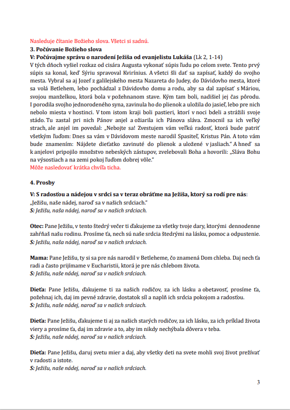 Drahí občania, Farský úrad Vám ponúka Liturgiu domácej cirkvi, ktorú môžete sláviť v kruhu rodiny pri štedrovečernom stole.